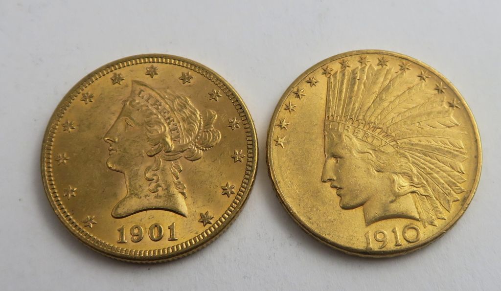 2 pièces 10 dollars or. Frais acheteur 20 % TTC