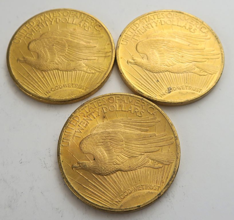 3 pièces de 20 dollars or 1924. Frais acheteur 20 % TTC