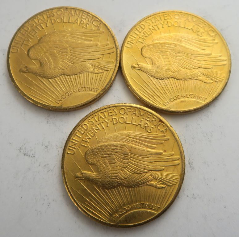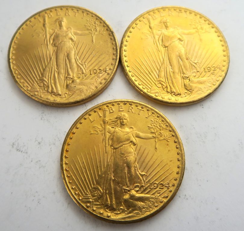 3 pièces de 20 dollars or 1924. Frais acheteur 20 % TTC