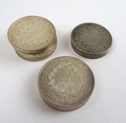 4 pièces de 50 francs argent 7 pièces de 10 francs argent 3 pièces de 5 francs argent