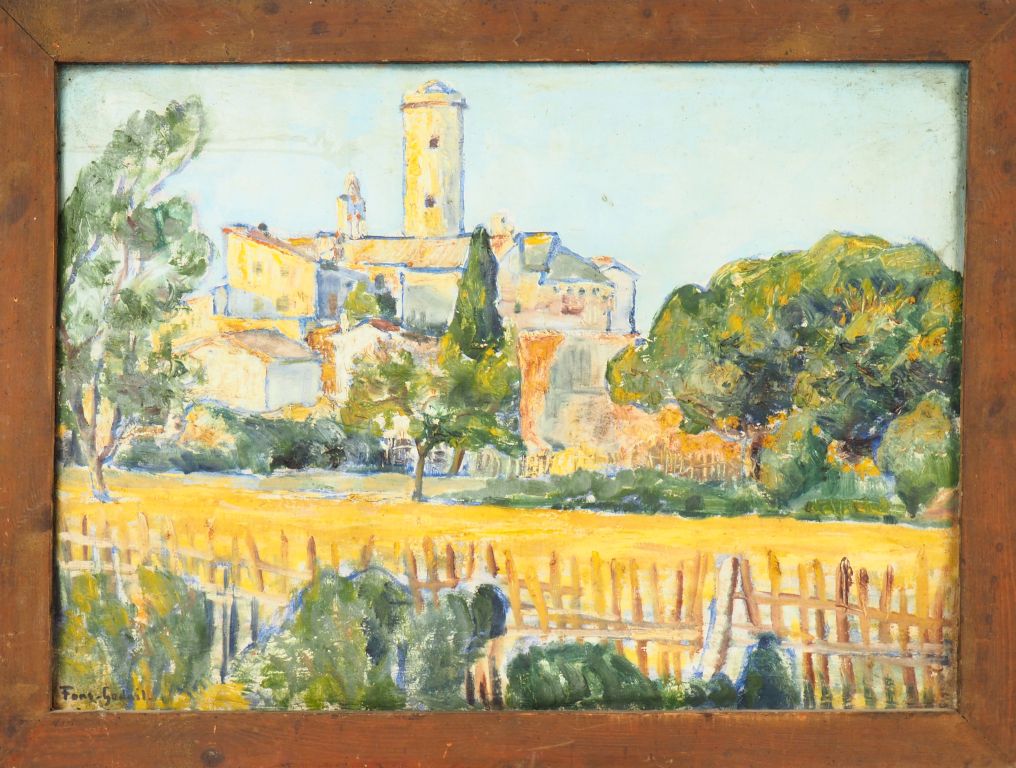 André FONS GODAIL. "Village catalan". Huile sur toile, signée en bas à gauche Dim. 70 x 50 cm