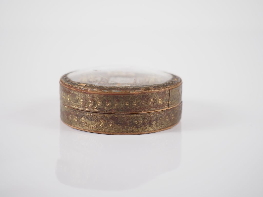 Lot de Boite Restauration en verre et carton mâché "Amitié". Diam. 6,5 cm au prix de 20 à 30 € en vente aux enchères par l'hôtel des ventes Primardeco