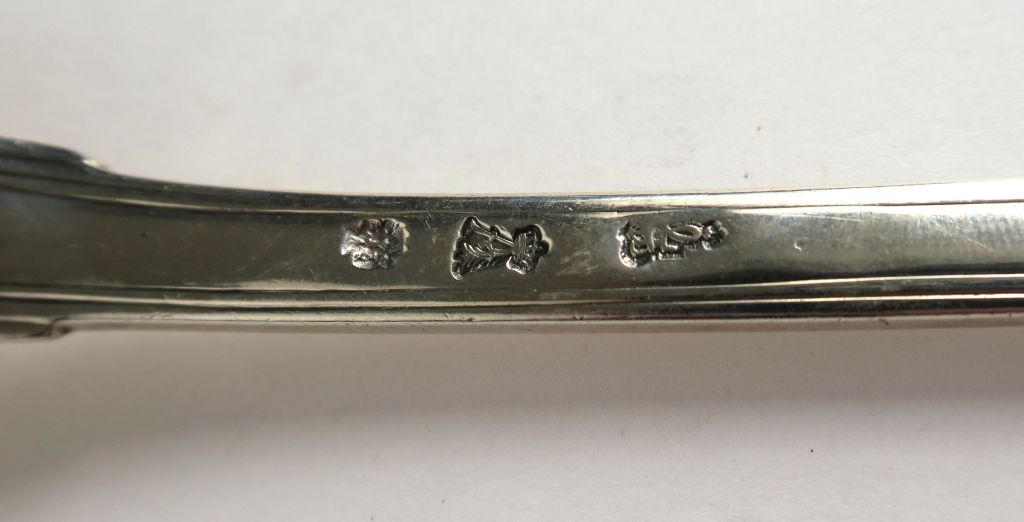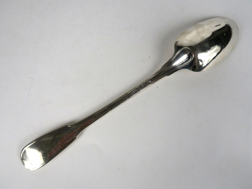 Cuillère à ragout XVIIIe en argent, modèle au filet. Poids : 176 g