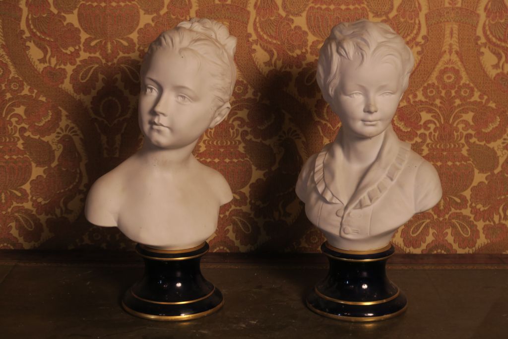 D'après HOUDON. "Charles et Iris". Paire de sujets en biscuit. H. 41 c...