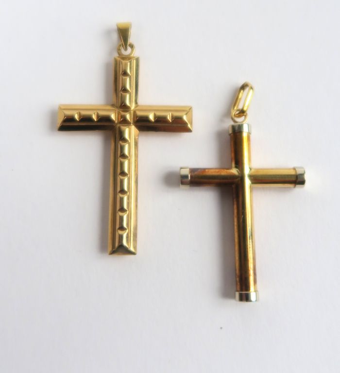 Deux croix en or. Poids : 5 g
