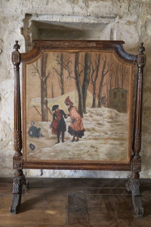 Ecran de cheminée ornée d'une huile sur toile signée Marx, "ballade d'...