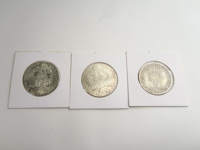 Ecu Louis XIV et deux pièces Marie-Thérèse d'Autriche en argent.