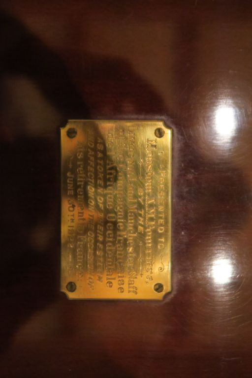 John BAGSHAW AND SOONS . Table à système en acajou et placage d'acajou, à décor de rocaille et de rinceaux feuillagés, ouvrant à deux plateaux découvrant un caisson central. Dim. 80 x 117 x 62.5 cm