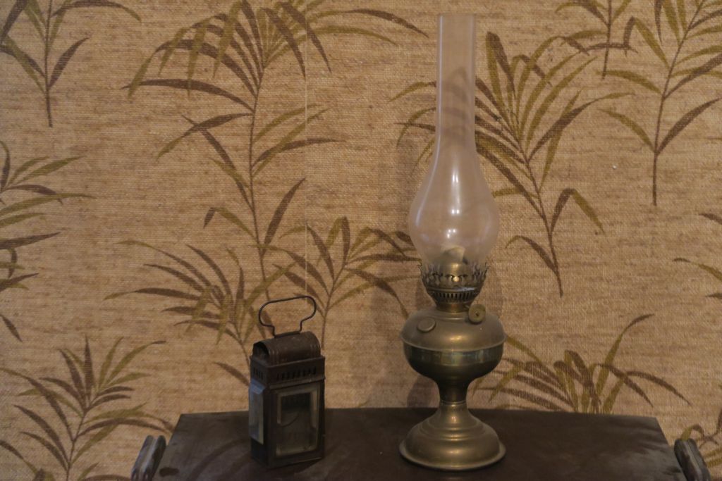 Lampe à pétrole en verre et étain Lanterne en verre et tôle