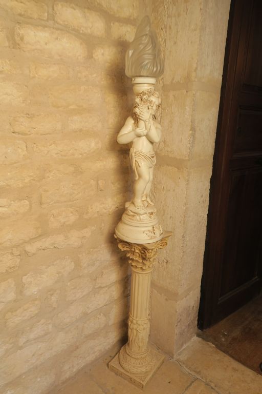 Lampe en forme de nubien porte torchère en composition. une colonne en composition. H. 153 cm.