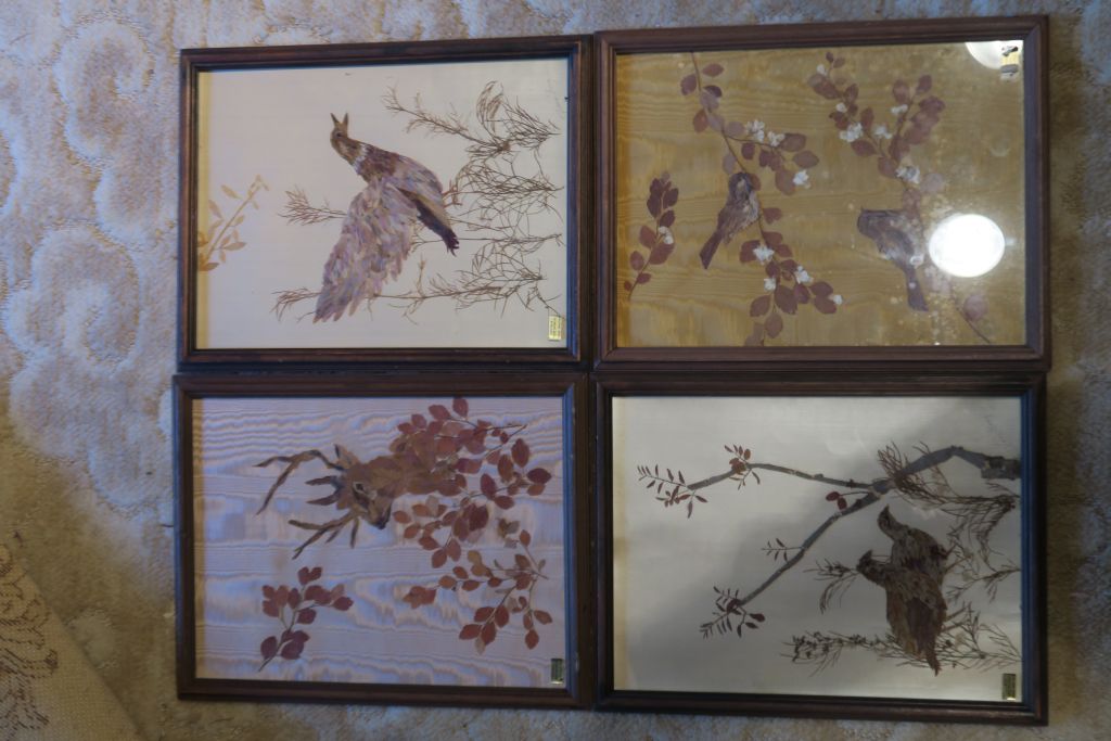 Lampe en porcelaine blanche. 4 encadrements "fleurs séchées"