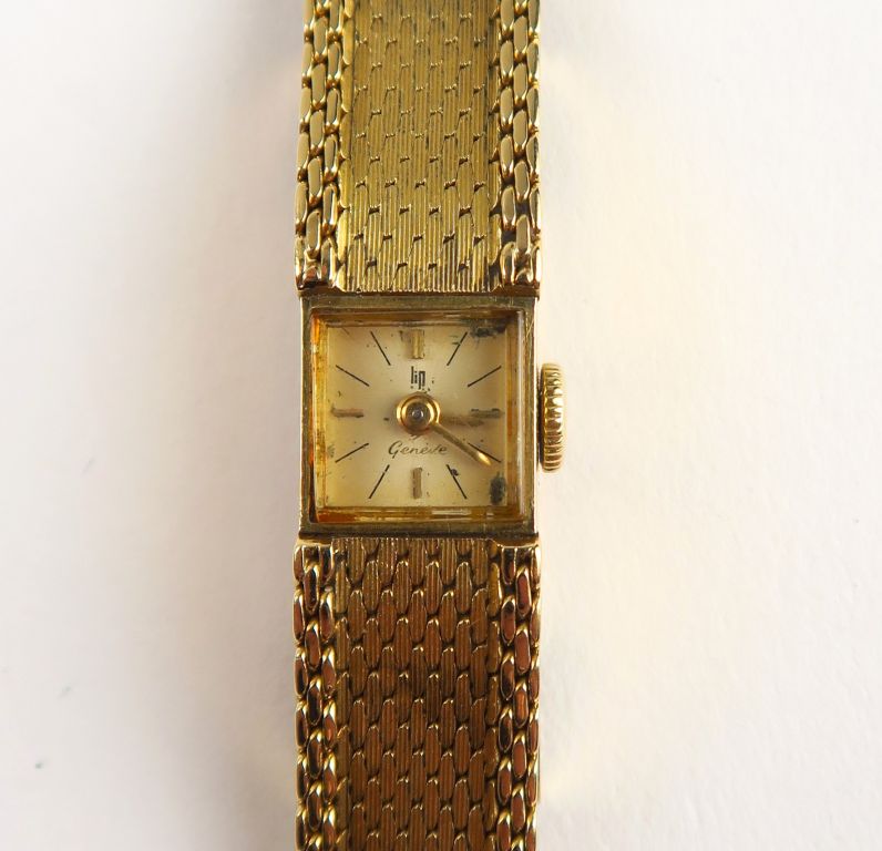 LIP. Montre de dame, boitier et bracelet en or. Poids tel : 36,3 g