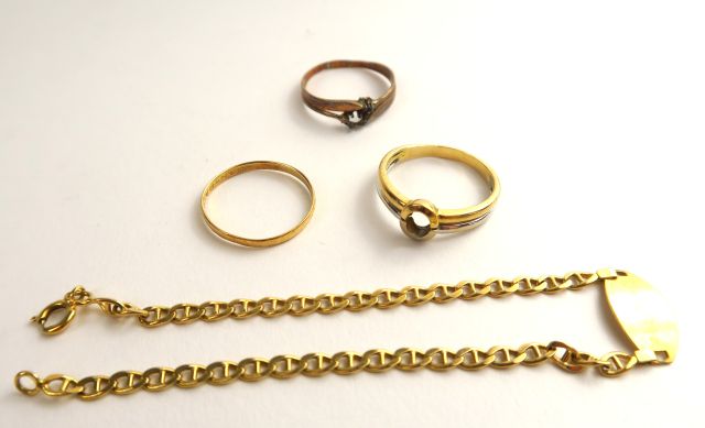 Lot d'or comprenant gourmette et montures de bague. Poids : 8,84 g