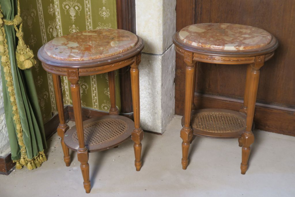 Lot de Paire de guéridons XIXème de style Louis XVI pieds cannelés, dessus ma au prix de 30 à 50 € en vente aux enchères par l'hôtel des ventes Primardeco