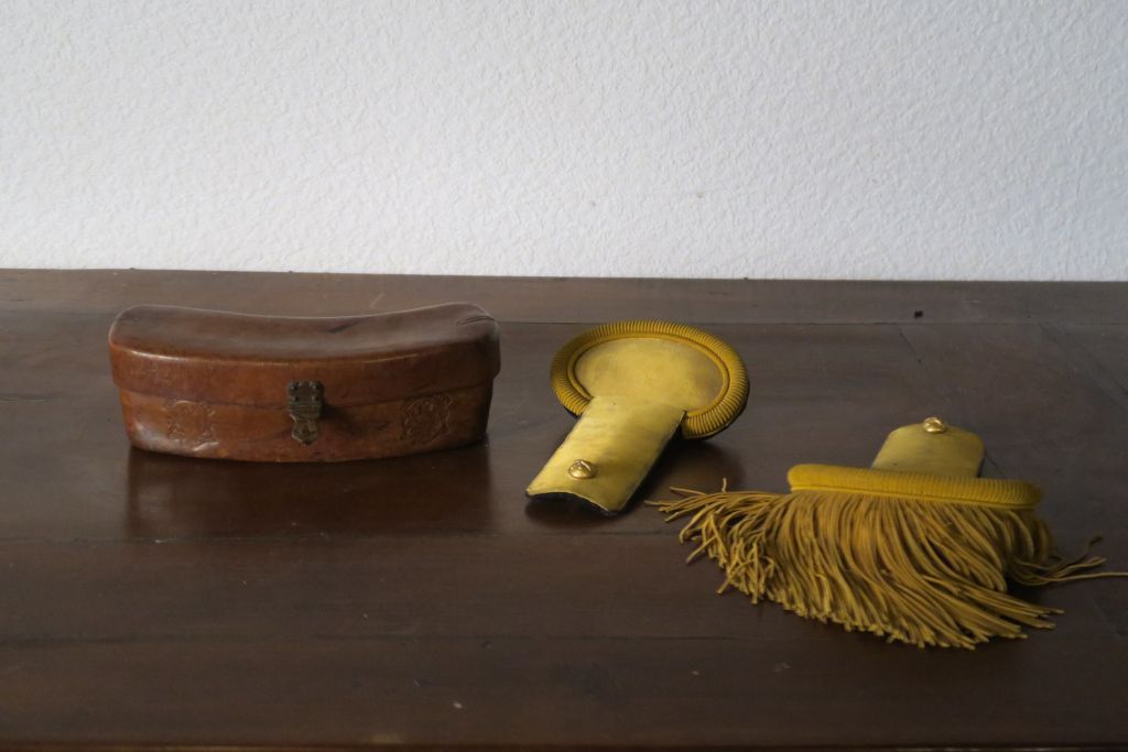 Lot de Paire d'épaulettes et une cartouchière en cuir. au prix de 30 à 50 € en vente aux enchères par l'hôtel des ventes Primardeco
