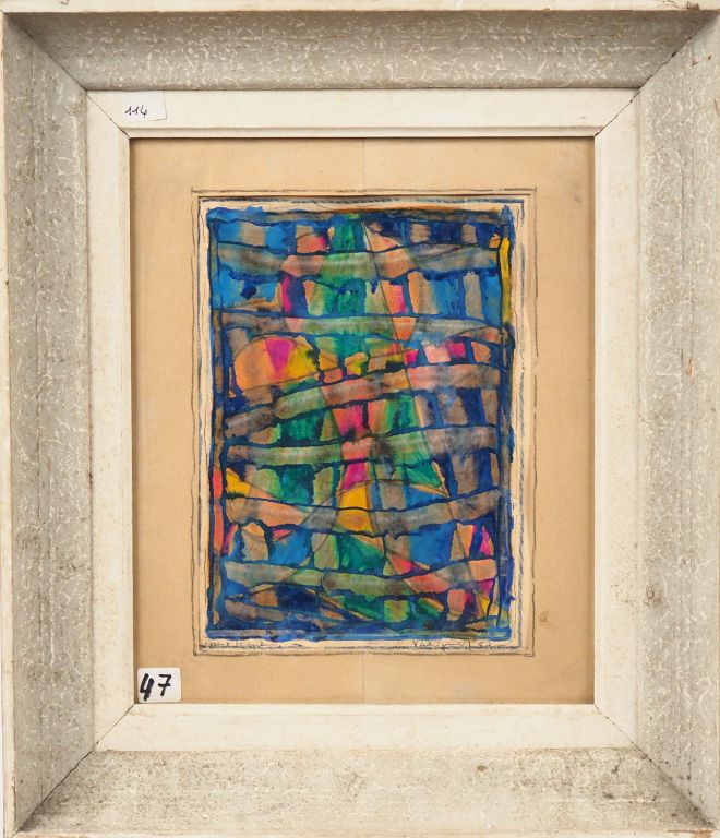 Pierre VALIGNAT. "Jeu de couleur". Aquarelle, signée en bas à droite et datée 1950 Dim. 22 x 15,5 cm