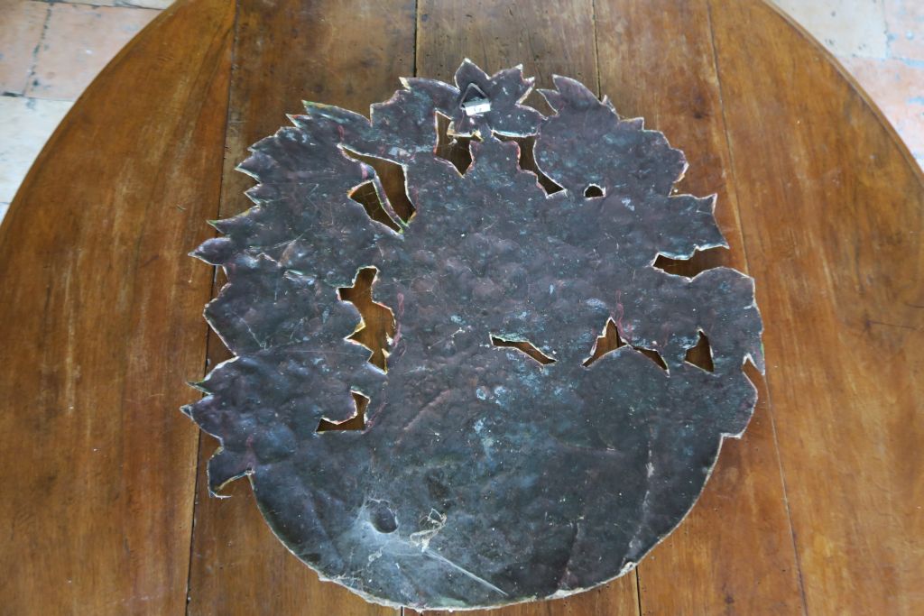 Lot de Plaque murale en métal peint à décor de fleurs. Dim. 61 x 60 cm. au prix de 20 à 30 € en vente aux enchères par l'hôtel des ventes Primardeco