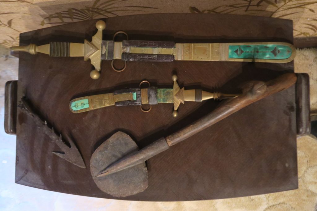Pointe de flèche en bronze un coupe coupe oriental une pelle une épée orientale en bronze et laiton