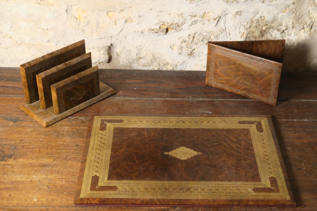 Porte documents, un porte courrrier, un porte lettres, un porte crayon l'ensemble en cuir.
