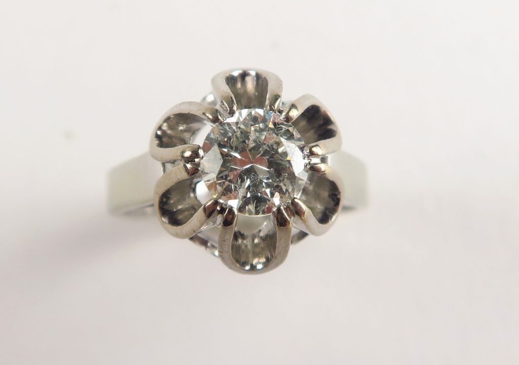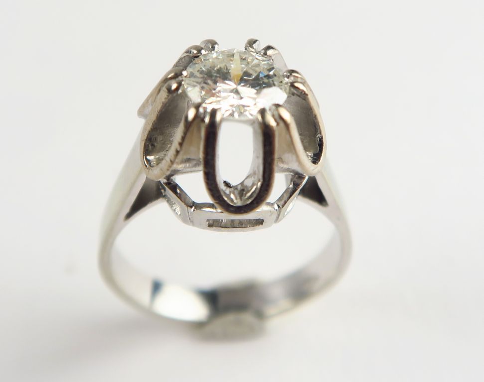 Solitaire de 0,80 carat environ. Monture en or blanc. Poids tel : 4,8 g
