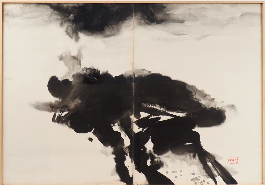 T'ANG AYWEN. "composition abstraite" Encre sur papier signée en bas à droite Dim. 69 x 99 cm