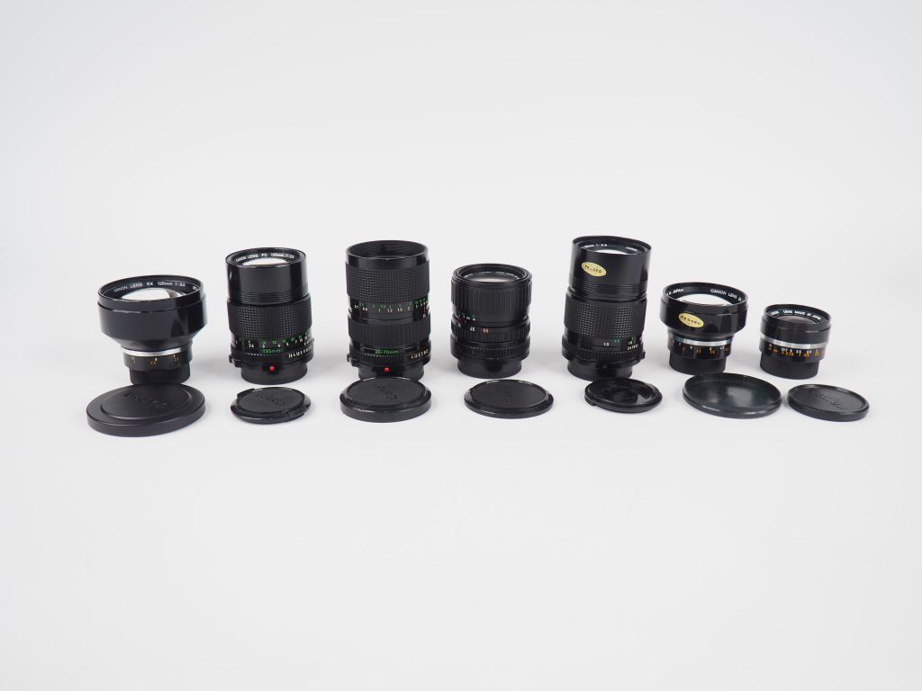 CANON. Lot de sept objectifs : - EX 1:3.5/95 n°26292 - FD 1:2.8/135 n°36276 - EX 1:3.5/125 n°35742 - FD 1:4/35-70 n°294524 - FD 1:3.5/135 n°267422 - FD 1:3.5-4.5/28-55 n°63854 - EX 1:3.5/35 n°22800