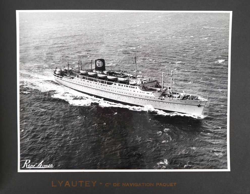 Carnet de photographies de la Compagnie Nationale Paquet sur le navire "Lyautey". 23 photographies en noir et blanc.