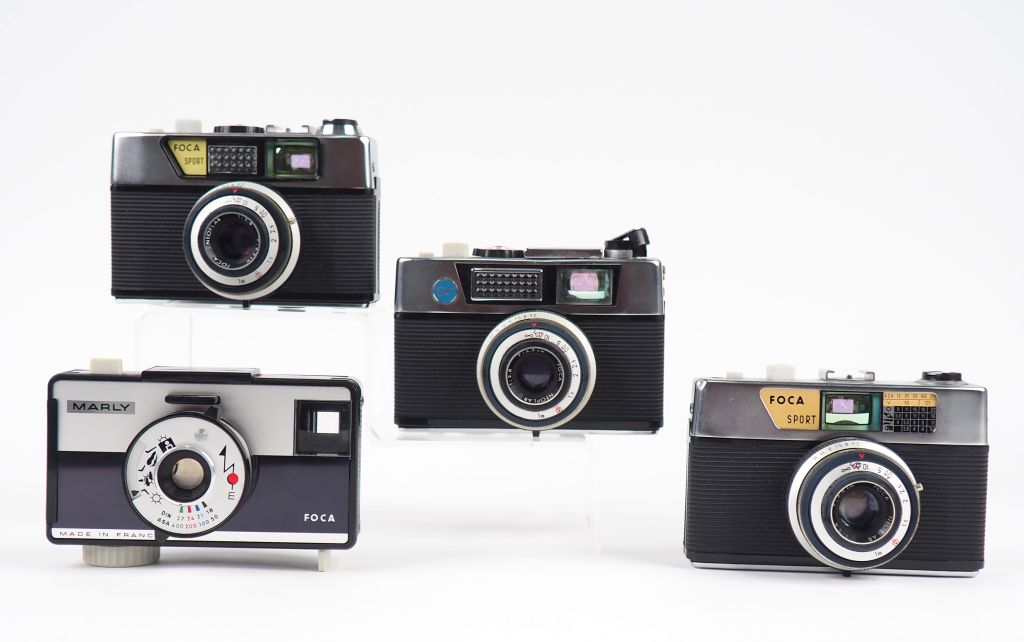 FOCA. Lot de quatre appareils photographiques : - MARLY avec objectif FIX-COLOR 50 - FOCA SPORT n°1.099.545 avec objectif NEOPLAR 1:2.8/45 - FOCA SPORT n°1.062.976 avec objectif NEOPLAR 1:2.8/45 - FOCASPORT n°1094.565 ave objectif 1:2.8/45