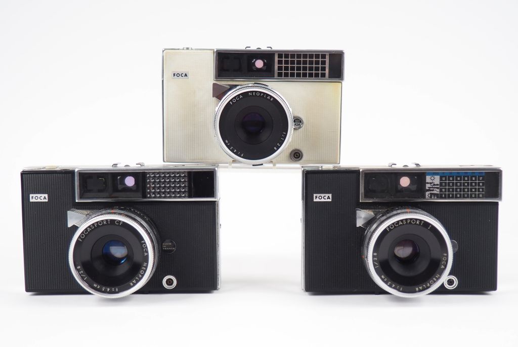 FOCA. Lot de trois appareils photographiques : - FOCAPSORT I n° 1.030003 avec objectif NEOPLAR 1:2.8/45 - FOCAMATIC n°19.940 M avec objectif NEOPLAR 1:2.8/45 - FOCASPORT CF n°12.347 K avec objectif NEOPLAR 1:2.8/45
