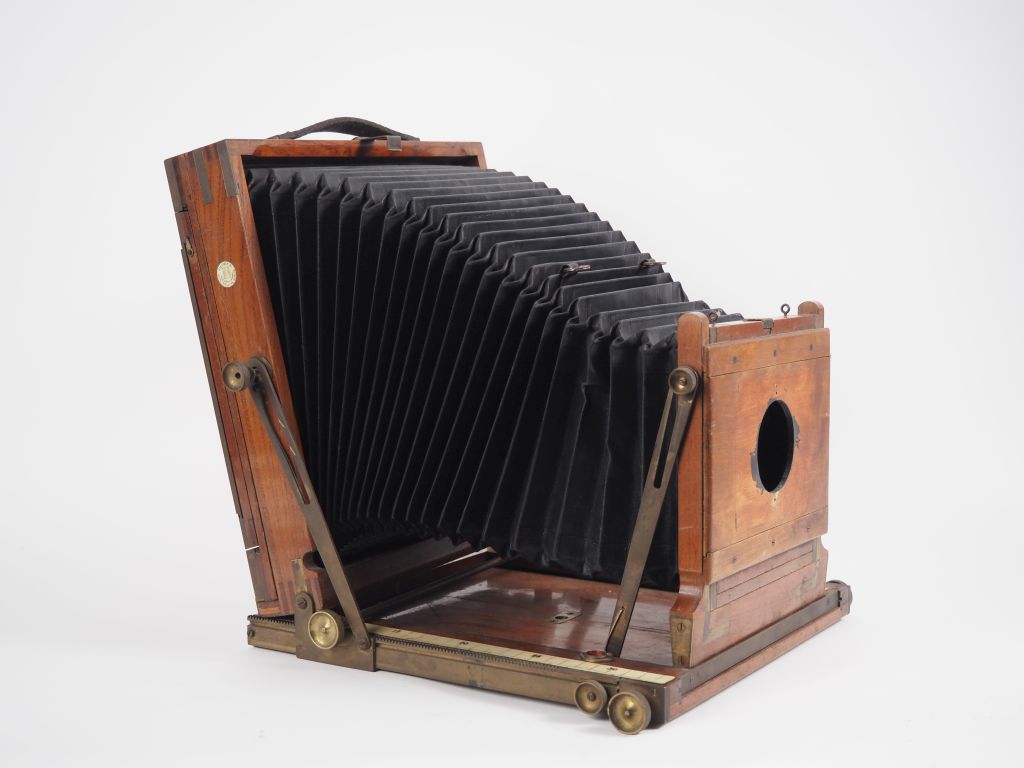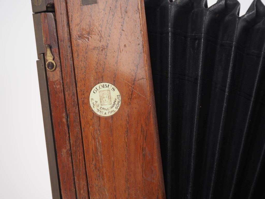 GLOBUS ERNEMANN. Chambre photographique 18 x 24 cm en acajou verni. (sans objectif)