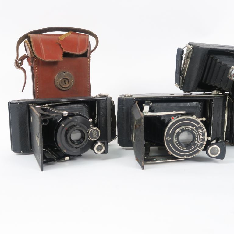 Lot de 4 appareils photographiques : ZEISS IKON SIMPLEX (511/2) KODAK BROWNIE PLIANT (SIX-20) KODAK 616 ZEISS IKON IKONTA avec housse