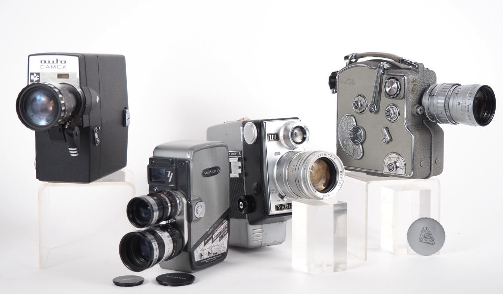 Lot de quatre caméras 8mm : - AUTO CAMEX n°3880 - YASHICA UL n°4063824 - CAMEX 8 n°52243 - YASHICA-8 n°3891129