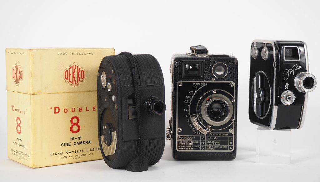 Lot de trois caméras 8mm : - SIEMENS - DEKKO DOUBLE 8 avec sa boite d'origine - RUSSE