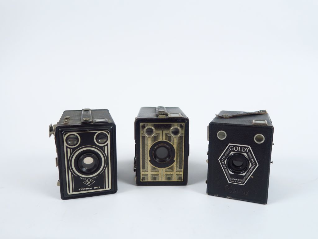 Trois box 6x9 de marques différentes : - Agfa - Goldy - Kodak Brownie...