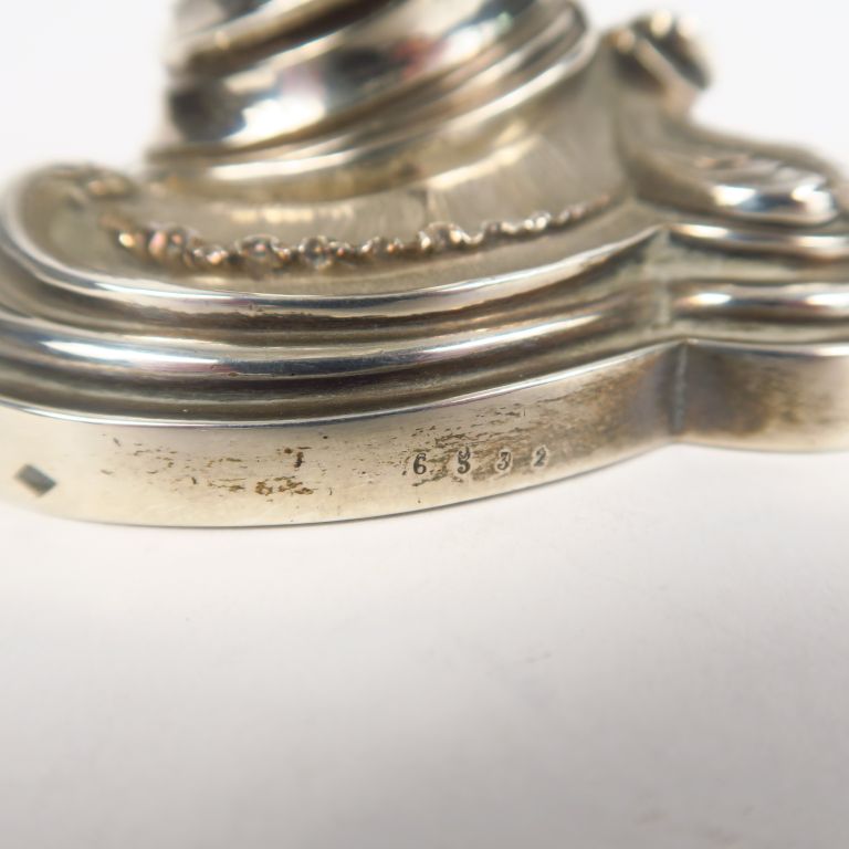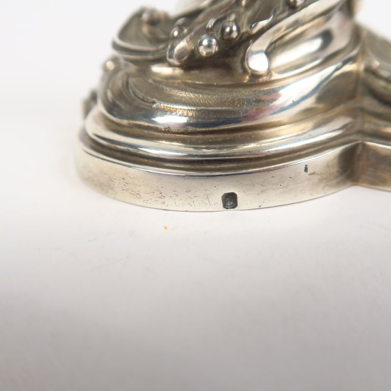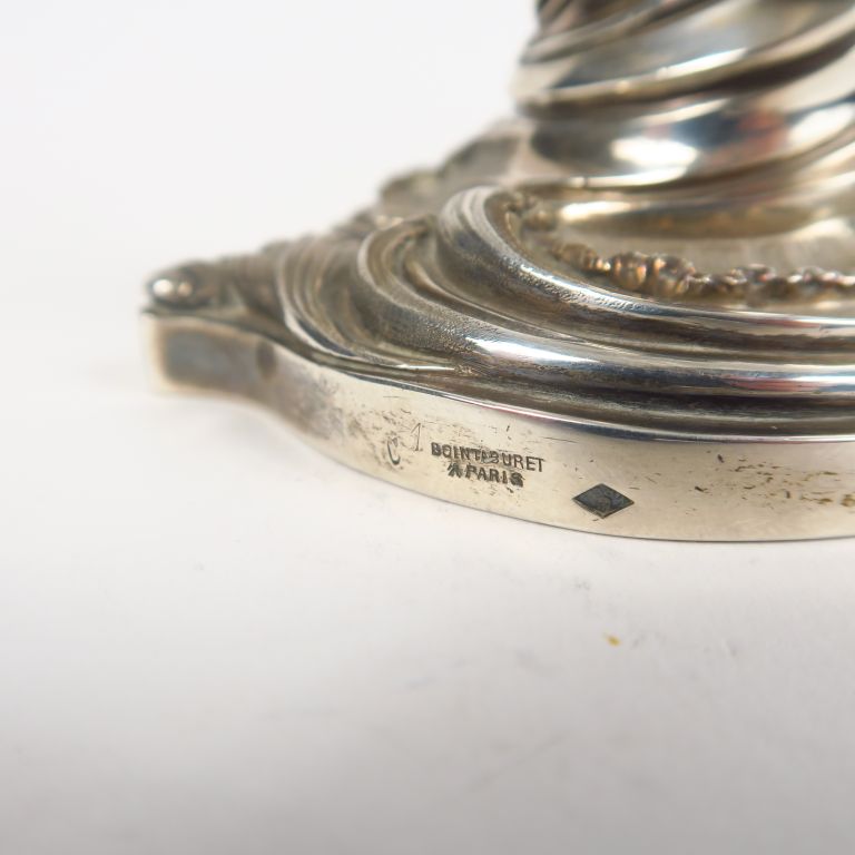 BOINTABURET à Paris. Paire de bougeoirs de toilette de style rocaille en argent, poinçon Minerve. H. 8,5 cm Poids. 630 g