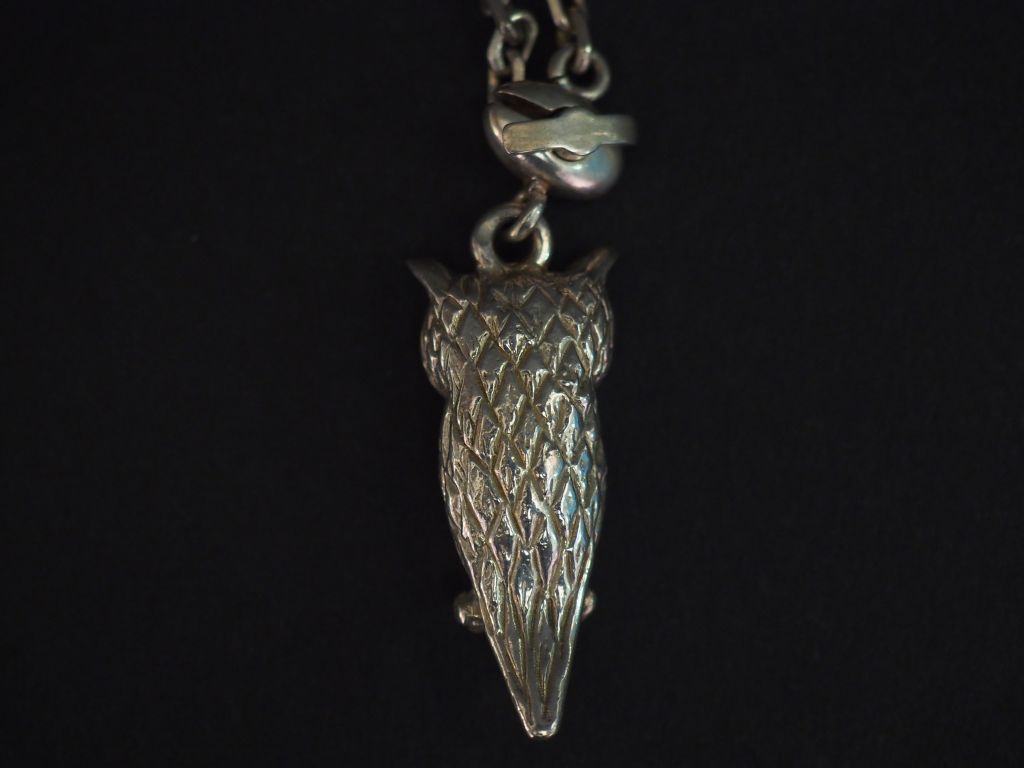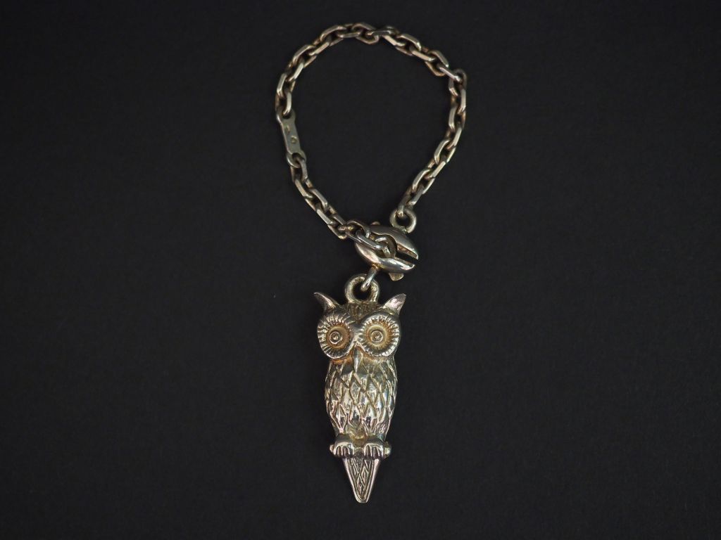 Bracelet d'enfant ou pendentif en argent, à décor d'une pendeloque en forme de chouette. Poids. 33 g