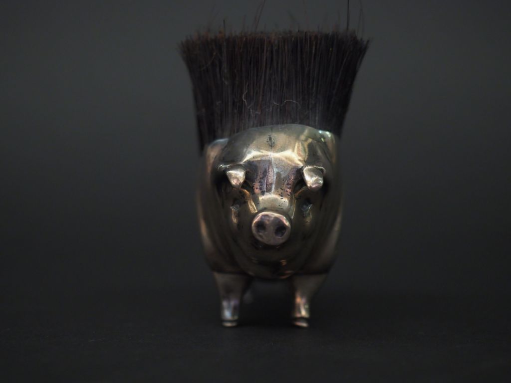 Cochon formant brosse en argent anglais. 7 x 10,5 cm Poids tel. 131 ...