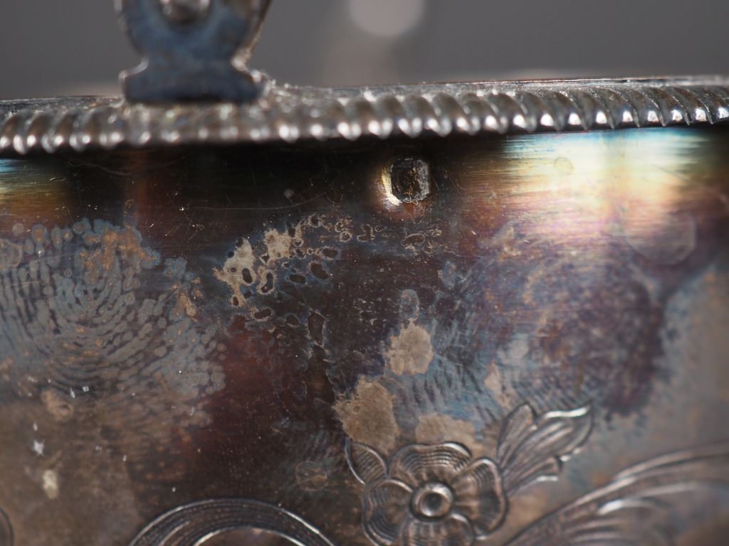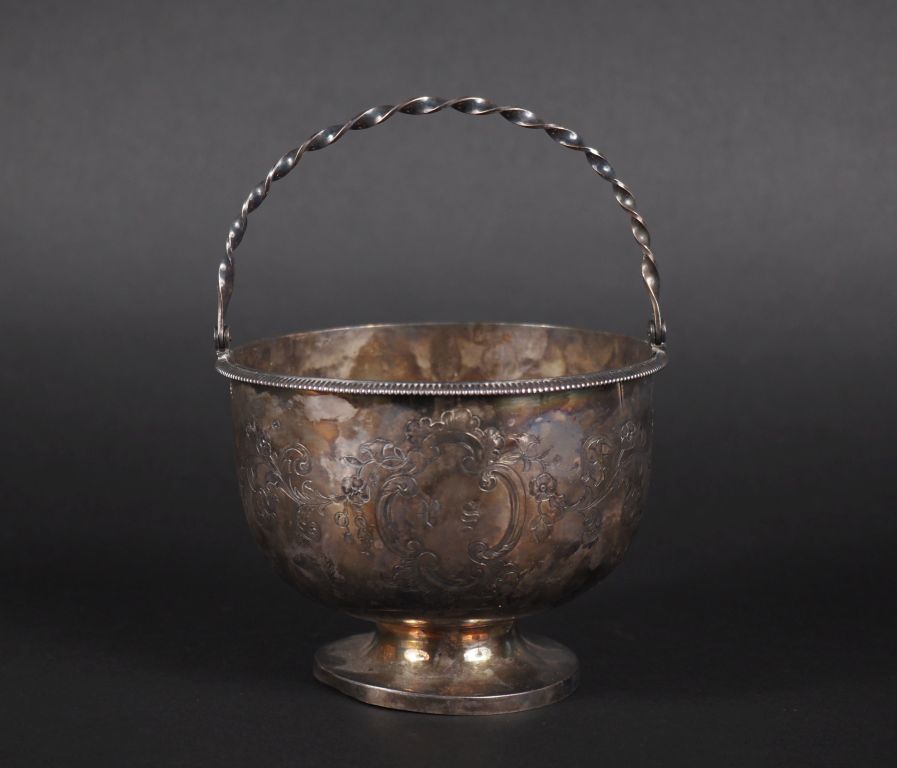 Coupe à anse en argent, poinçon Minerve, décor de guirlandes, de feuillage et de fleurs Poids : 276 g