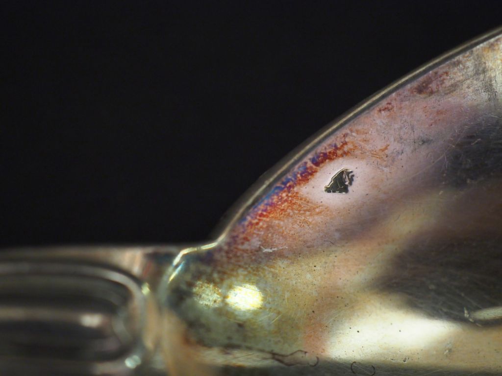 Couvert à salade en argent, poinçon Minerve, à décor de godrons et de monogramme. Poids. 211 g