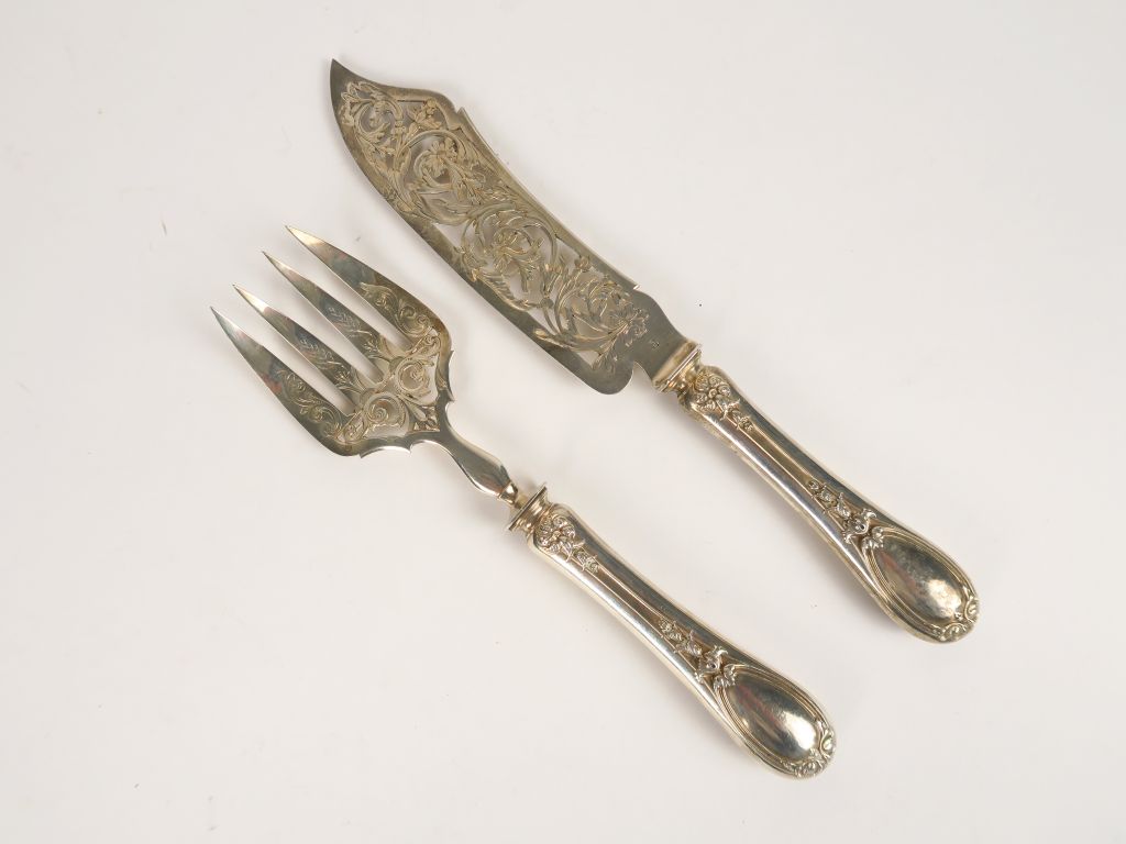 Couvert à servir le poisson en argent et argent fourré, poinçon Minerve. Poids tel : 194 g