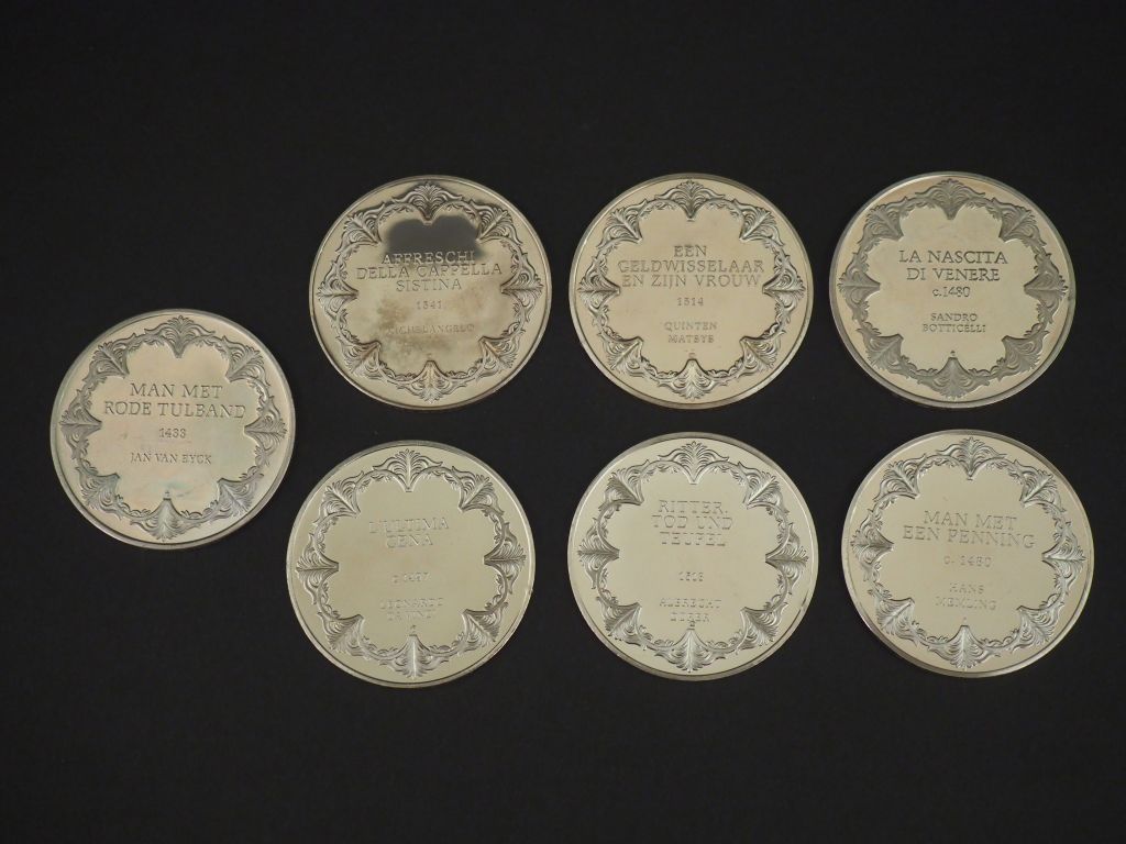 Ensemble comprenant sept différentes médailles de collection en argent, représentant des œuvres de peintres célèbres. Poids. 222 g