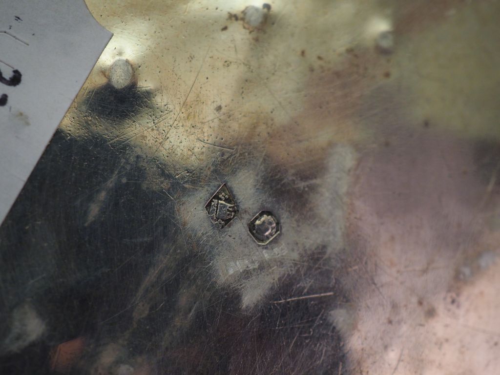 Ensemble comprenant : - une louche à crème en argent, poinçon Minerve, modèle à filet, à décor de cartouche monogrammé. Long. 20,8 cm - un dessous de bouteille en argent, poinçon Minerve, à décor de rang de perles. Diam. 16,2 cm (petits enfoncements) - petite coupelle en argent étranger. H. 3,7 cm Poids. 260 g