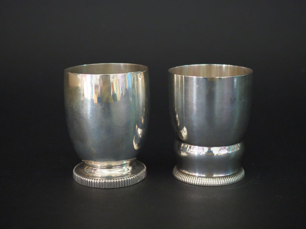 Ensemble comprenant : - une timbale sur piédouche en argent, poinçon Minerve, à décor de godrons. H. 8 cm - une timbale en argent, poinçon Minerve, à décor de godrons. H. 7,7 cm Poids. 217 g
