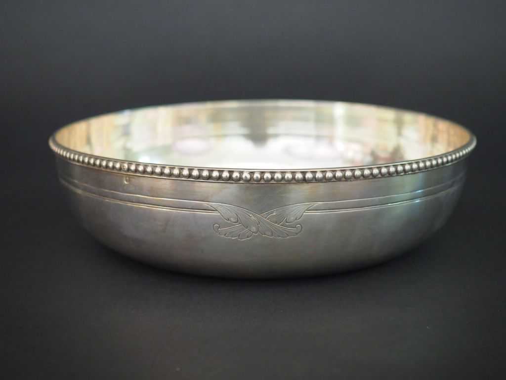 Jatte à crème de style Louis XVI en argent, poinçon Minerve, à décor de perles et de feuillage. Poids. 364 g