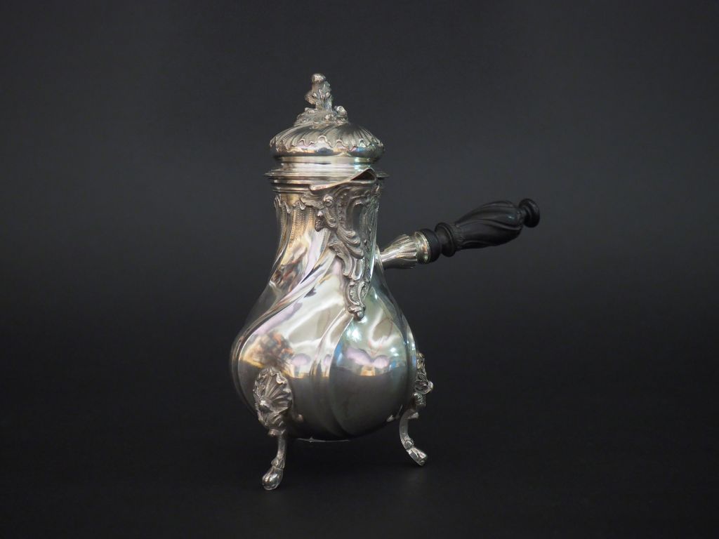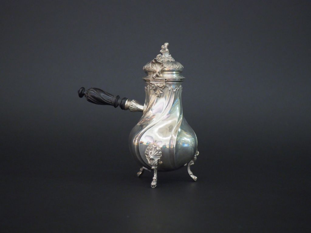 LAPAR. Verseuse en argent Napoléon III manche ébène. Poids : 335 g