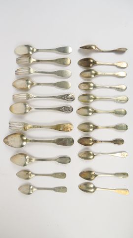 Lot comprenant divers couverts et petites cuillères dépareillés en argent. 706 g
