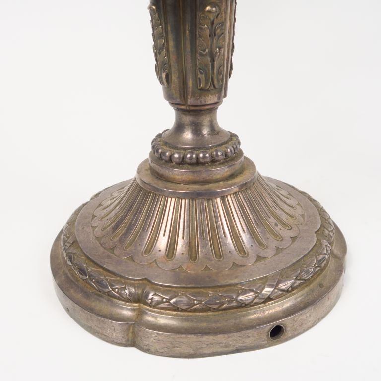 Paire de candélabres de style Louis XVI en argent, poinçon Minerve, éclairant à cinq bras de lumière. Poids. 6389 g (percés)