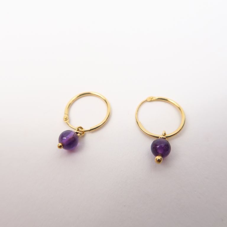 Paire de créoles en or jaune ornées de pierres mauves. Poids. 0,68 g