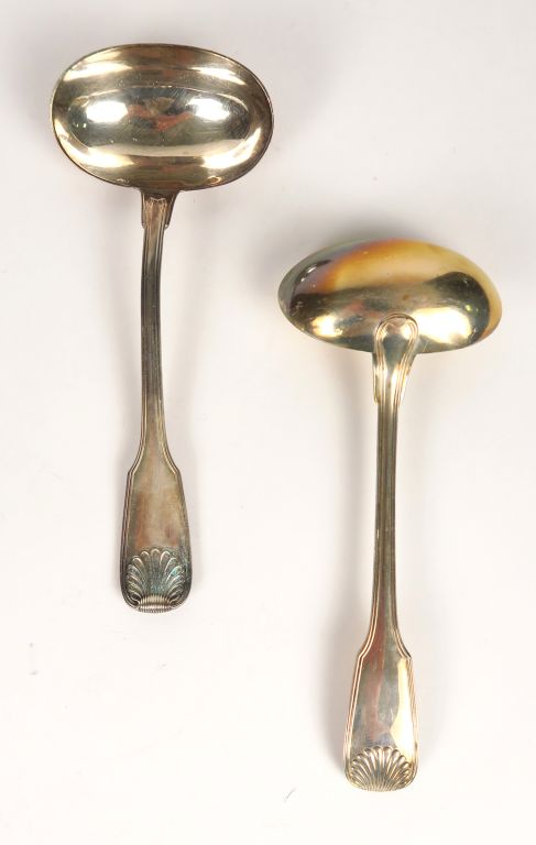 Paire de cuillères à sauce en argent, poinçon Minerve, modèle à double coquille. Poids : 153 g