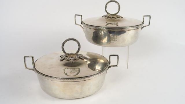 Paire de légumiers en argent, armoriés. 1903 g